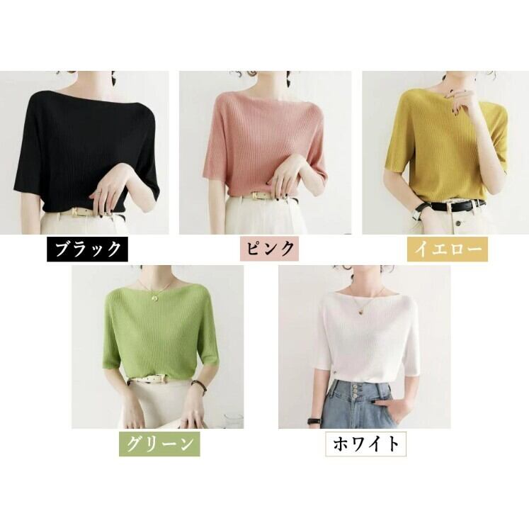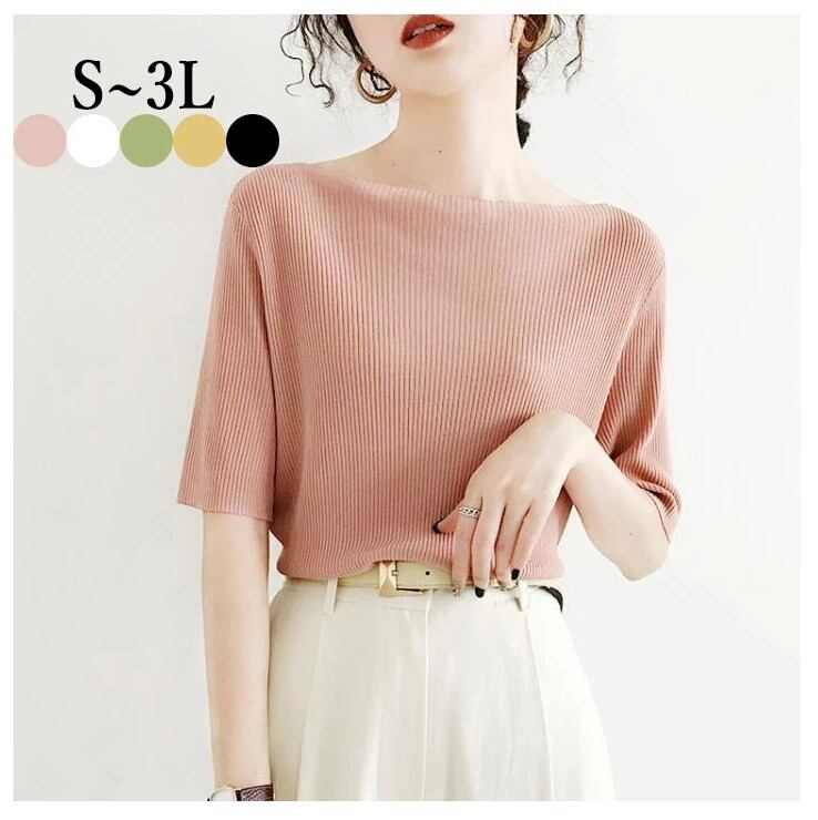 ■商品:ニットソー 半袖 リブニット レディース 5色 S-3L カットソー きれいめ カジュアル 韓国 ファッション コーデ おすすめ カジュアル きれいめ 大きいサイズ 人気 ゆったり 20代 30代 40代 50代