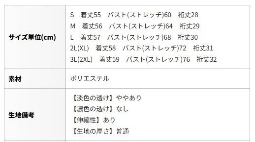 3L(2XL) 着丈59 バスト(ストレッチ)76 裄丈32