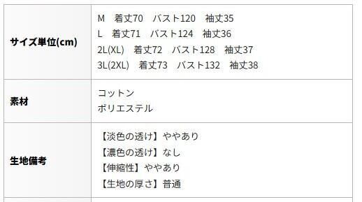 3L(2XL) 着丈73 バスト132 袖丈38
