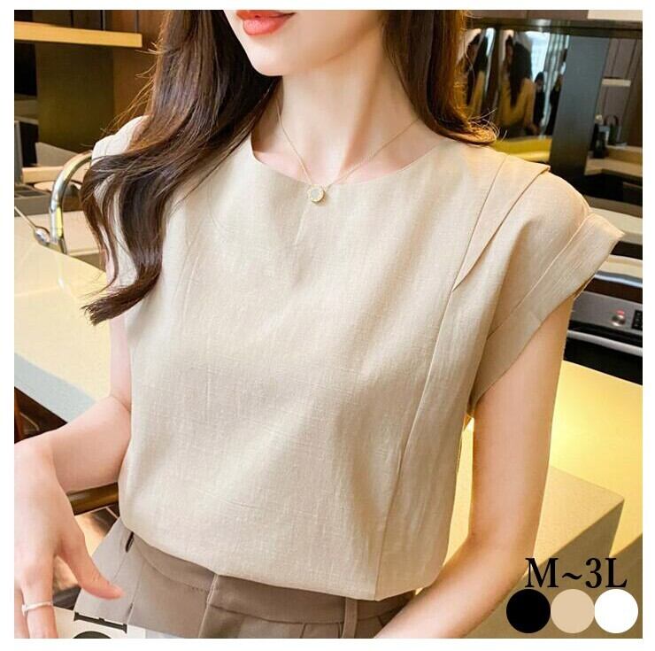 ■商品:ブラウス ノースリーブ レディース 3色 M-3L フレンチスリーブ トップス オフィス きれいめ 韓国 ファッション コーデ おすすめ カジュアル きれいめ 大きいサイズ 人気 ゆったり 20代 30代 40代 50代