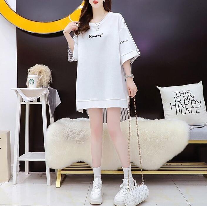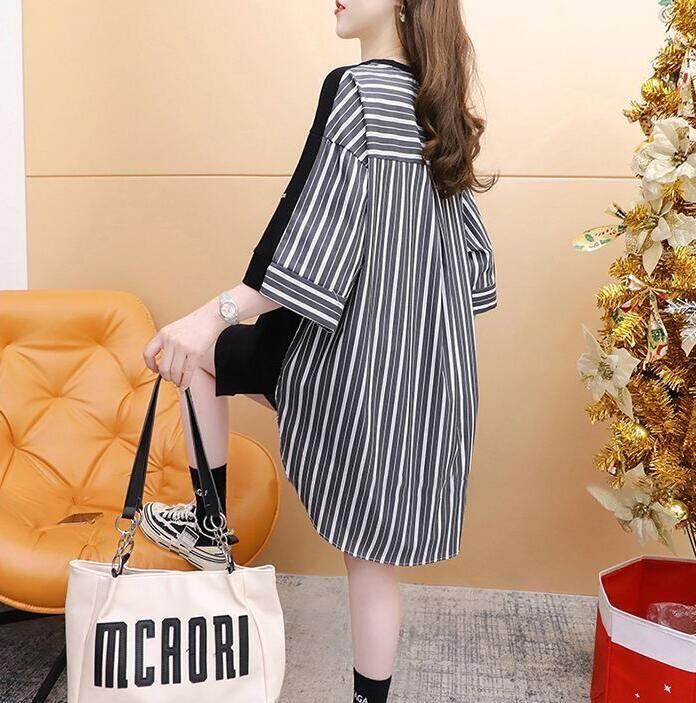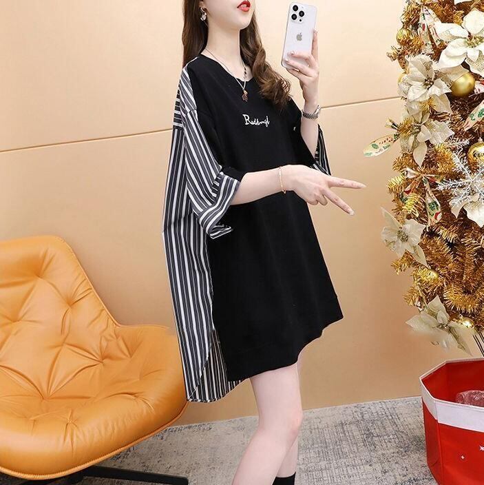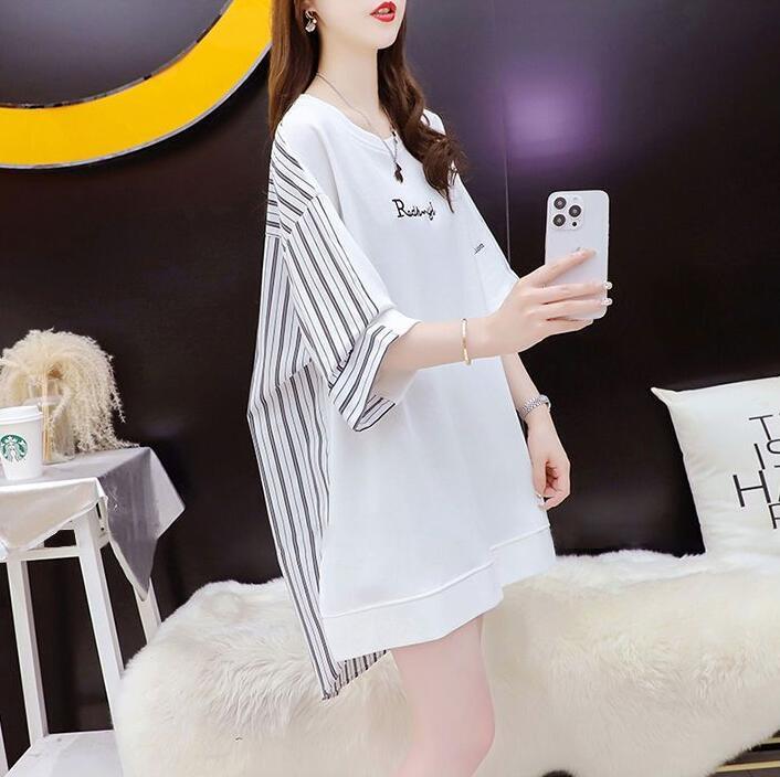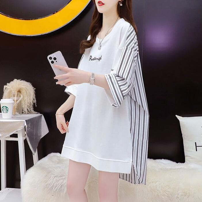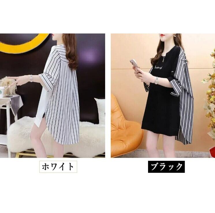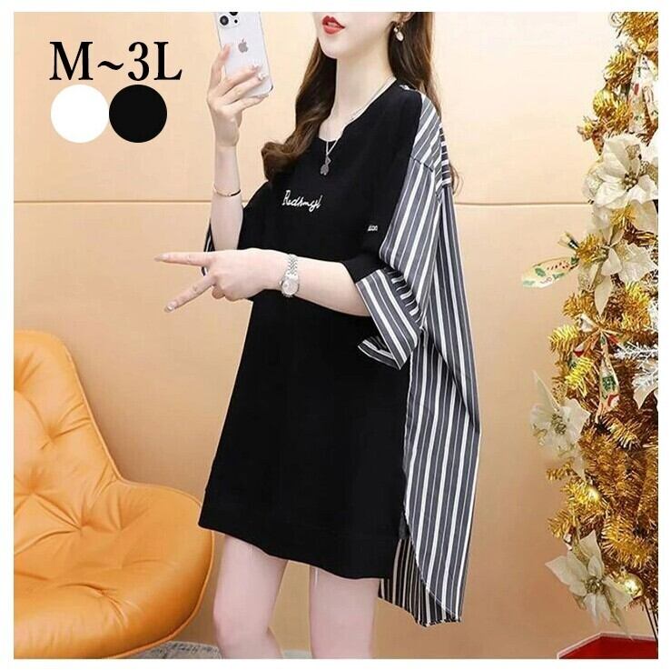 ■商品:tシャツ 5分袖 レディース 2色 M-3L 半袖 ストライプ チュニック ゆったり カジュアル 韓国 ファッション コーデ おすすめ カジュアル きれいめ 大きいサイズ 人気 ゆったり 20代 30代 40代 50代