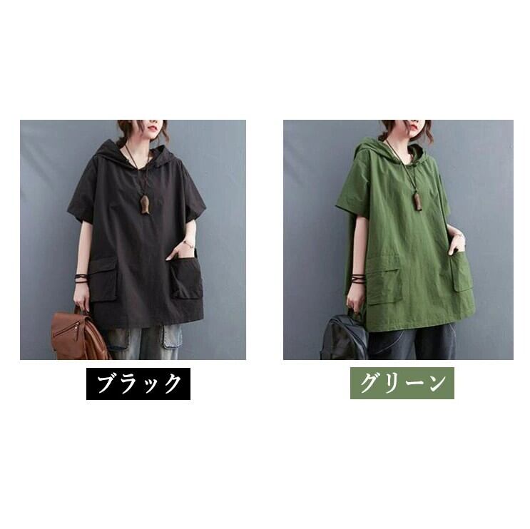 tシャツ 半袖 フード付き レディース 2色 フリーサイズ プルオーバー ゆったり カジュアル 26LT200