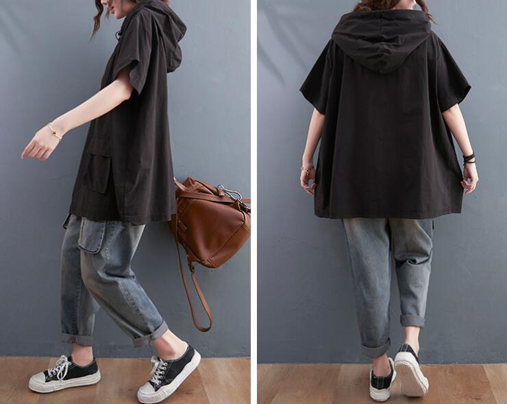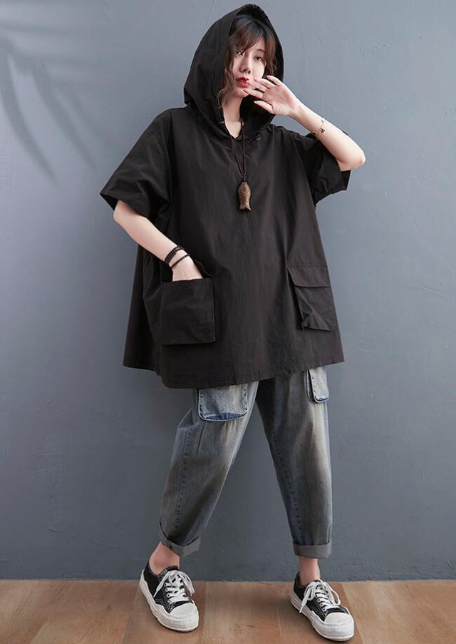 ■商品:tシャツ 半袖 フード付き レディース 2色 フリーサイズ プルオーバー ゆったり カジュアル 韓国 ファッション コーデ おすすめ カジュアル きれいめ 大きいサイズ 人気 ゆったり 20代 30代 40代 50代