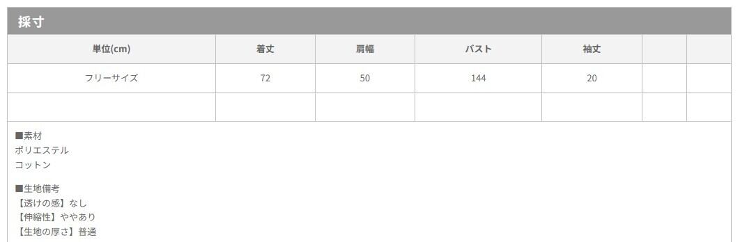 ★サイズ:フリーサイズ:着丈72 肩幅50 バスト144 袖丈20