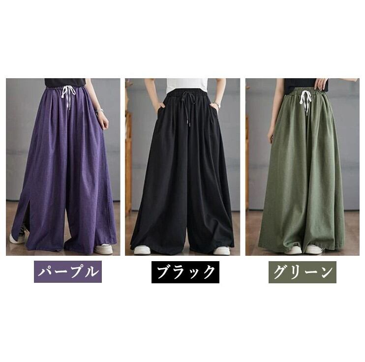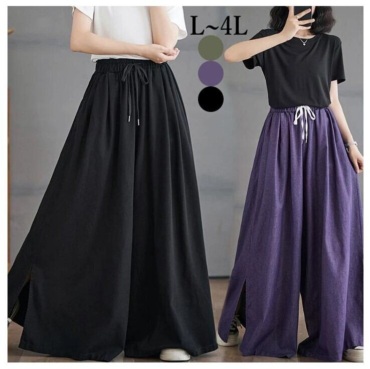 ■商品:ワイドパンツ スカーチョ レディース 3色 L-4L ロングパンツ ゆったり ウエストゴム カジュアル 春夏 韓国 ファッション コーデ おすすめ カジュアル きれいめ 大きいサイズ 人気 ゆったり 20代 30代 40代 50代