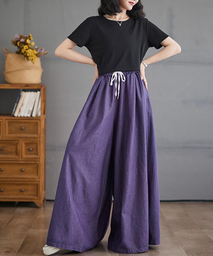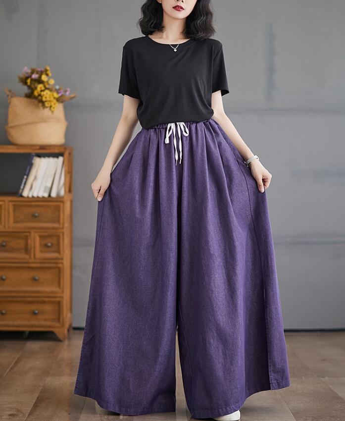 ワイドパンツ スカーチョ レディース 3色 L-4L ロングパンツ ゆったり ウエストゴム カジュアル 春夏 26LT206
