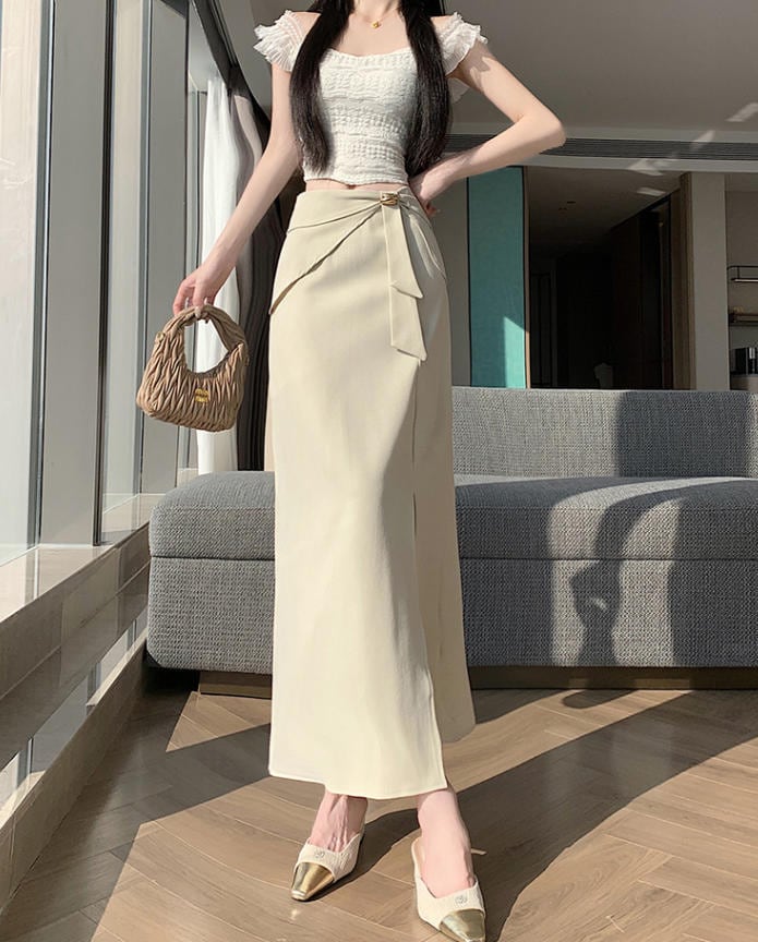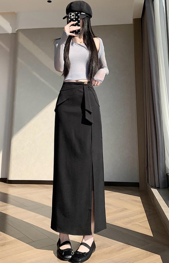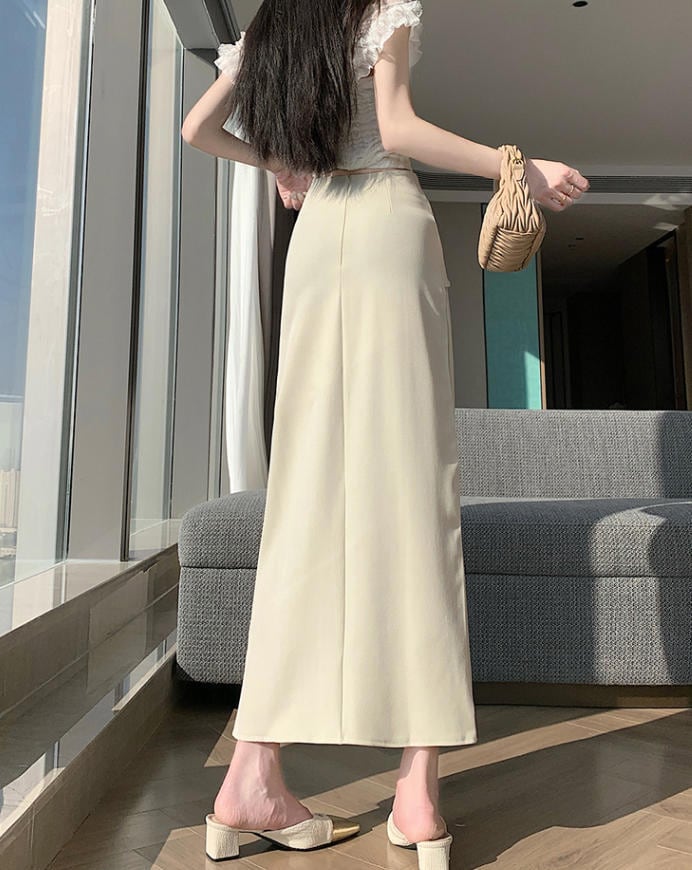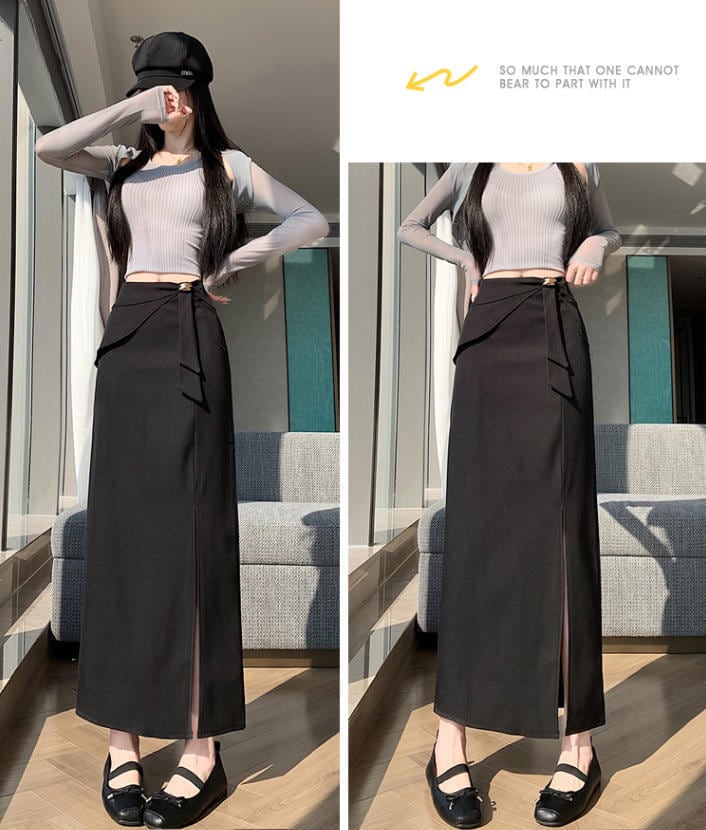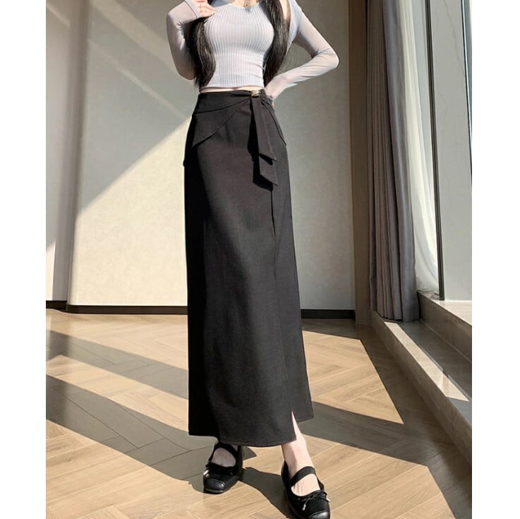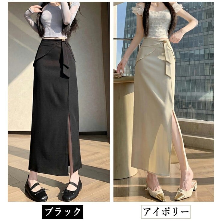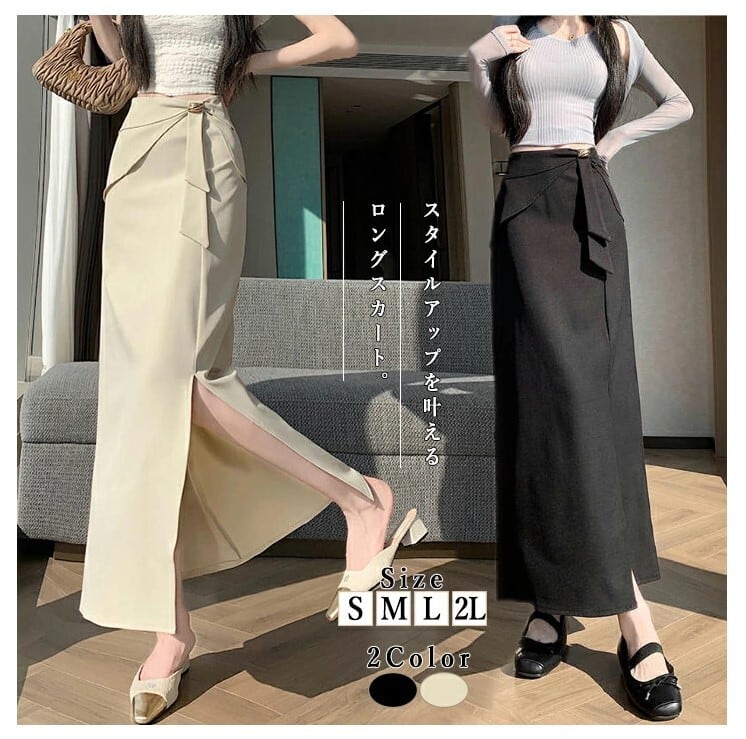 ■商品:ロングスカート スリット ロング丈 レディース 2色 S-2L ハイウエスト エレガント 大人カジュアル 韓国 ファッション コーデ おすすめ カジュアル きれいめ 大きいサイズ 人気 ゆったり 20代 30代 40代 50代