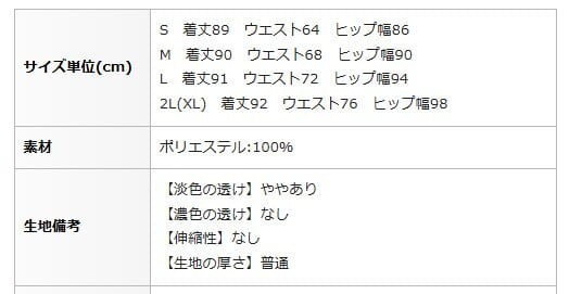 2L(XL) 着丈92 ウエスト76 ヒップ幅98