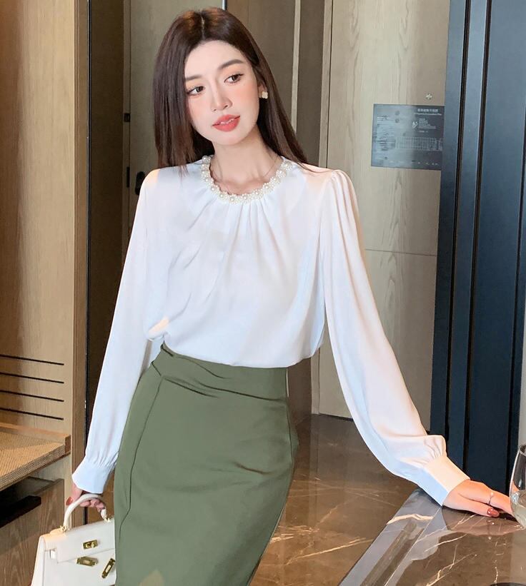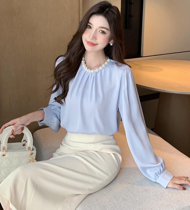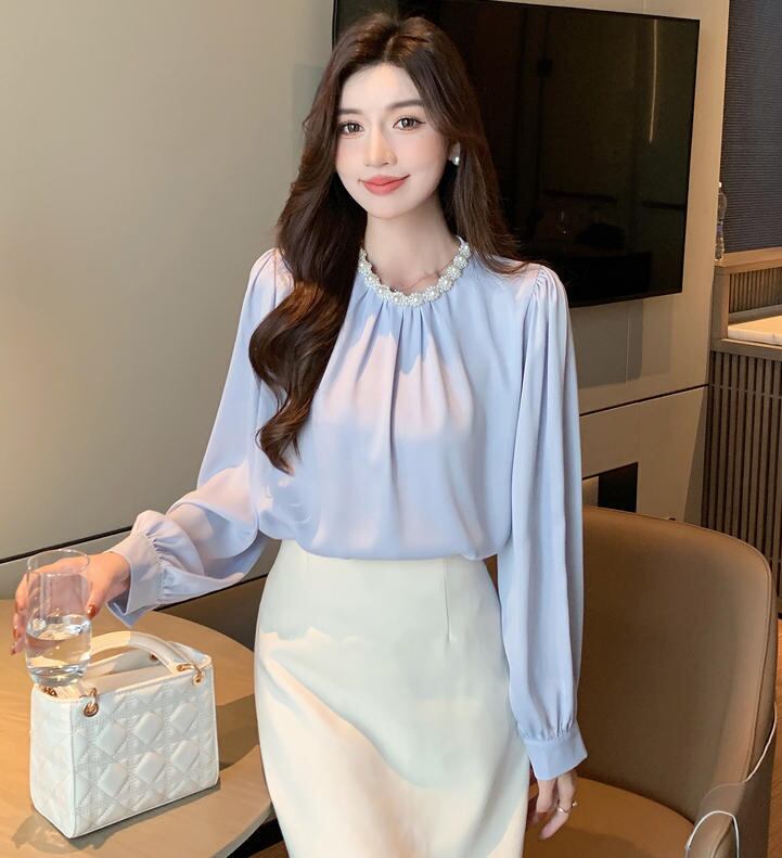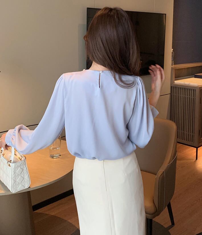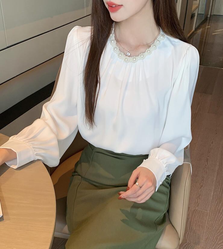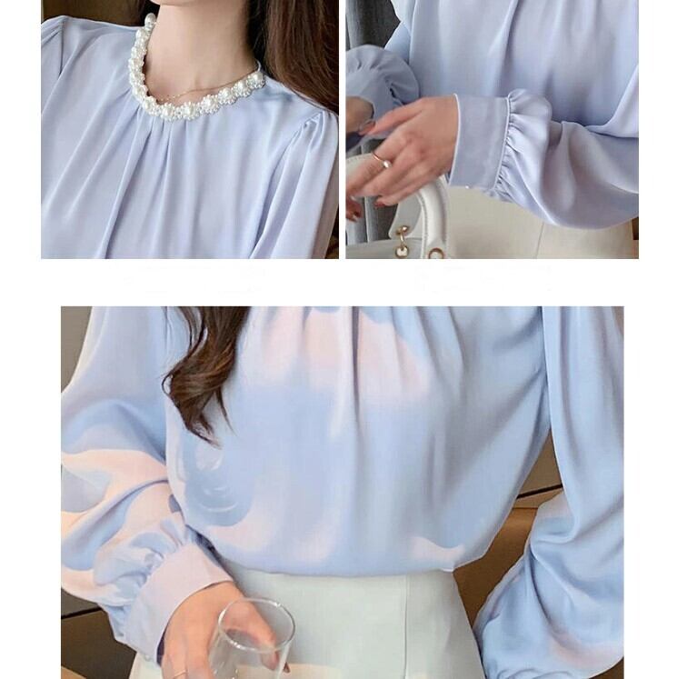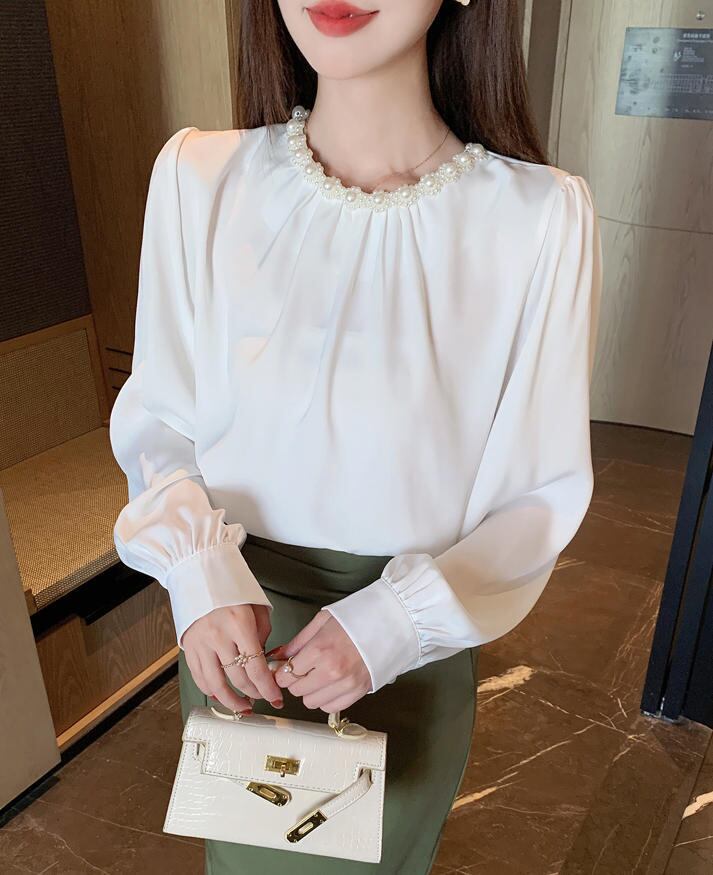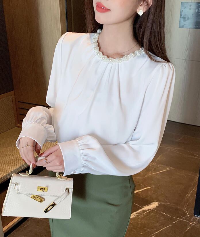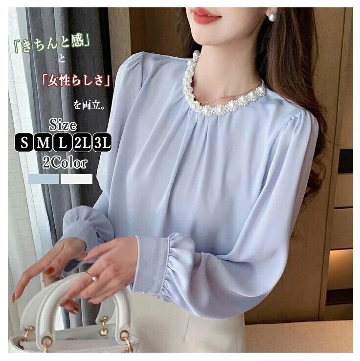 ■商品:ブラウス パール付き サテン レディース 2色 S-3L 上品 オフィス フォーマル 韓国 ファッション コーデ おすすめ カジュアル きれいめ 大きいサイズ 人気 ゆったり 20代 30代 40代 50代