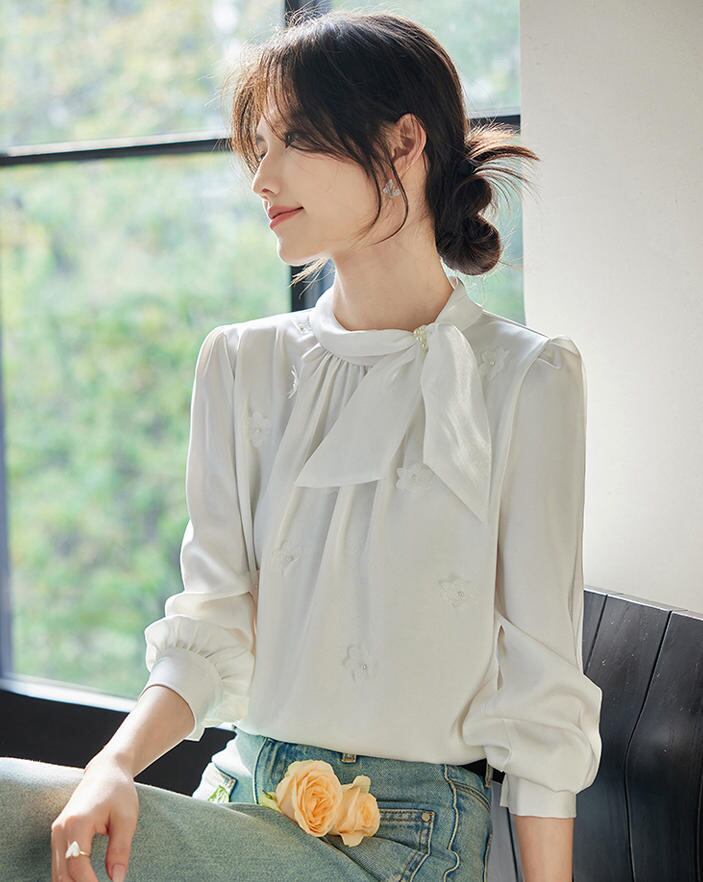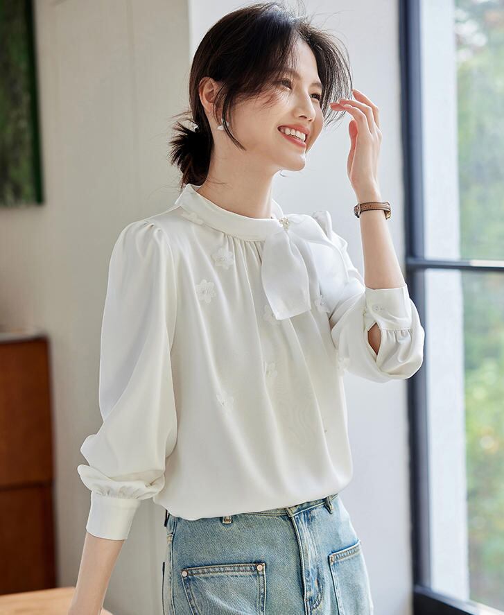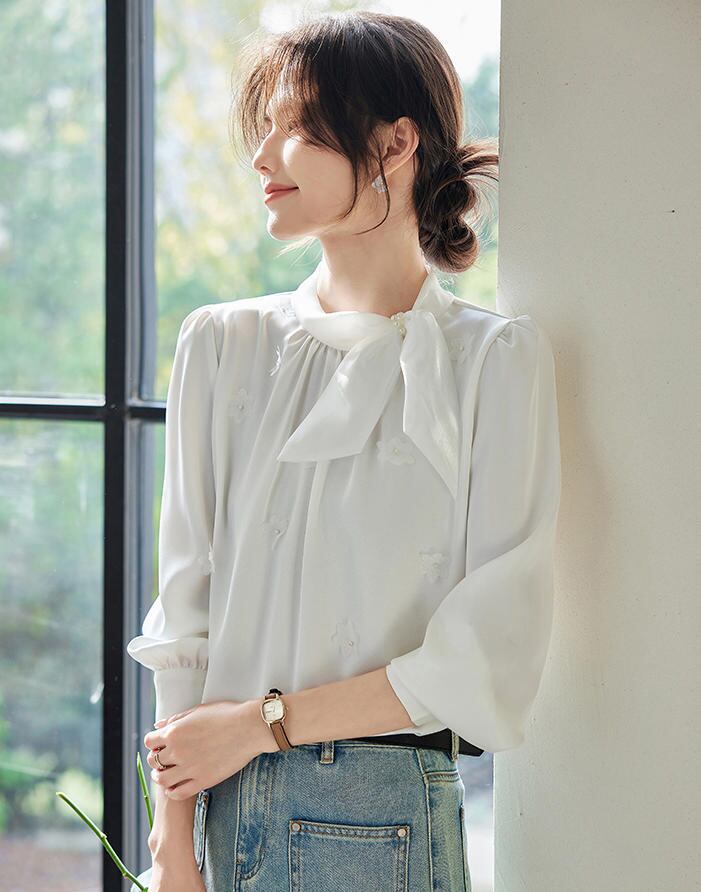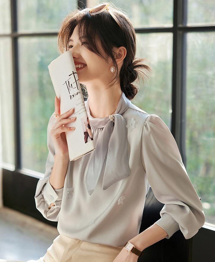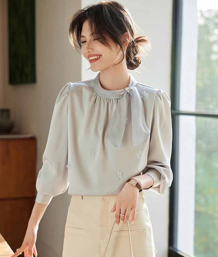 ■商品:ブラウス ボウタイ 長袖 サテン レディース 2色 S-3L パール 上品 オフィス フォーマル 韓国 ファッション コーデ おすすめ カジュアル きれいめ 大きいサイズ 人気 ゆったり 20代 30代 40代 50代