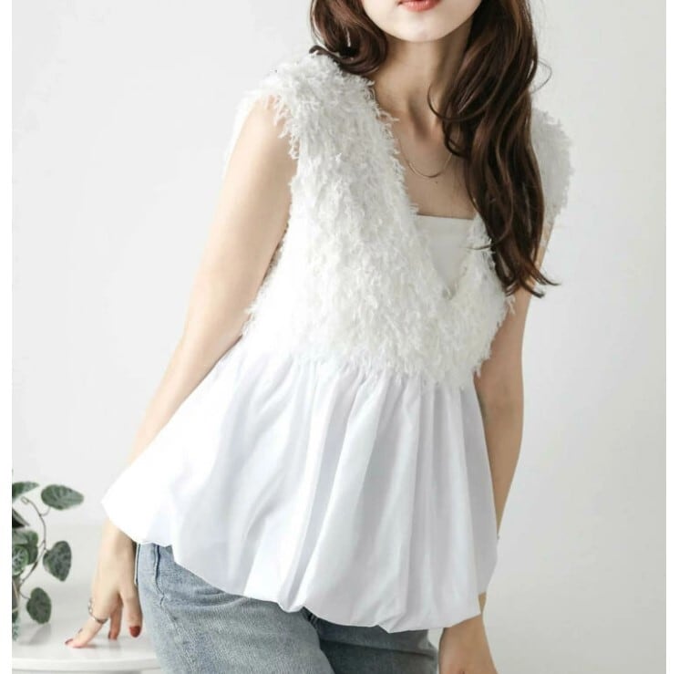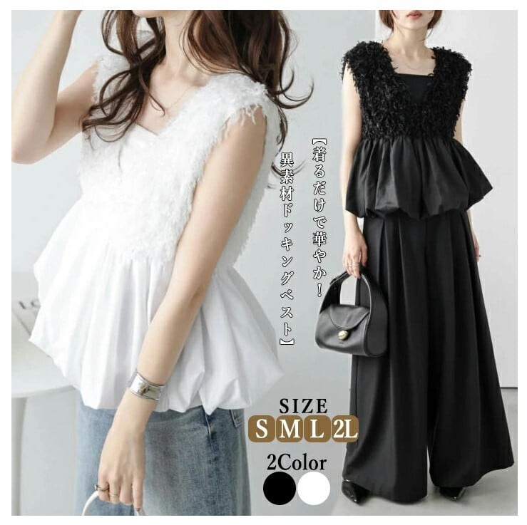 ■商品:ベスト ジレ Vネック レディース 2色 S-2L 異素材 ドッキング へプラム 大人可愛い きれいめ 韓国 ファッション コーデ おすすめ カジュアル きれいめ 大きいサイズ 人気 ゆったり 20代 30代 40代 50代