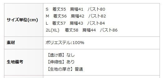 2L(XL) 着丈58 肩幅44 バスト86