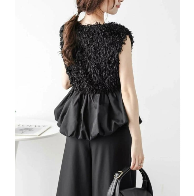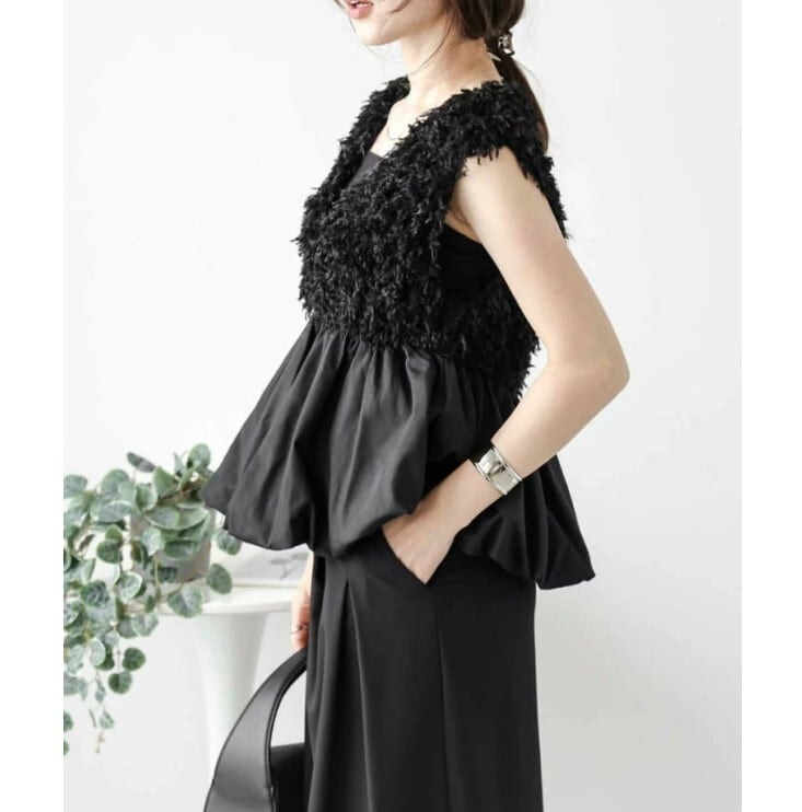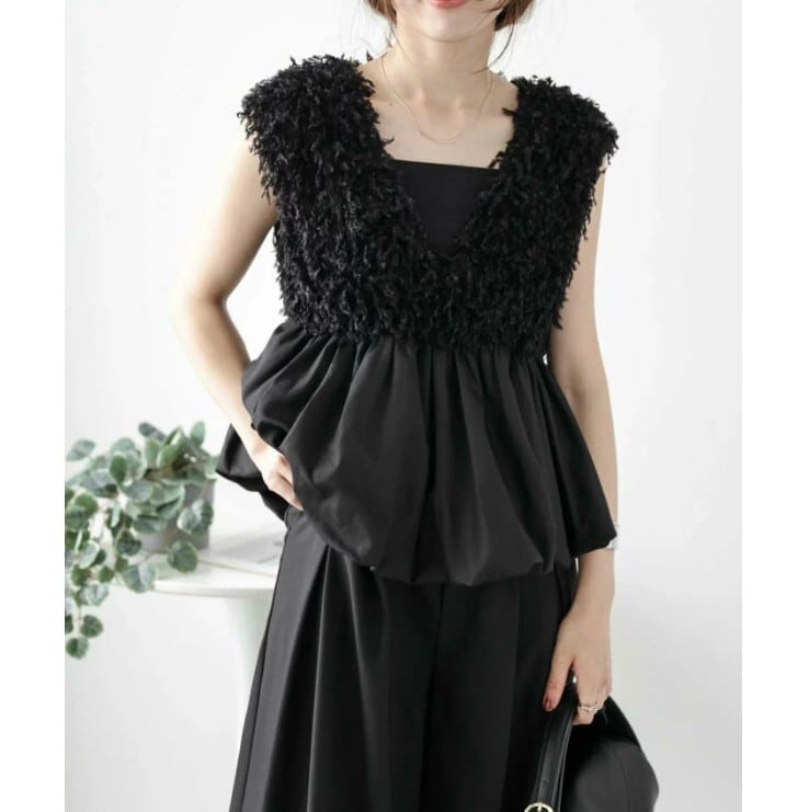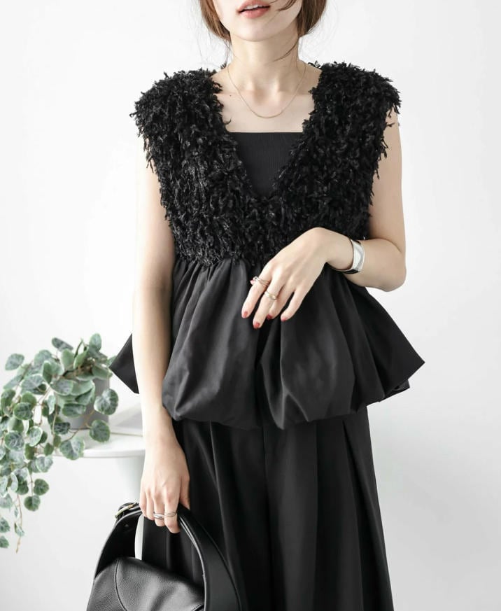 ★特徴:このベスト ジレは、Vネックデザインと異素材のドッキングが特徴のアイテムです。へプラムシルエットが大人可愛い印象を与え、きれいめコーディネートに最適です。Sから2Lまでのサイズ展開があり、2色の中からお好みのカラーを選ぶことで、あなたのスタイルを引き立てることができます。