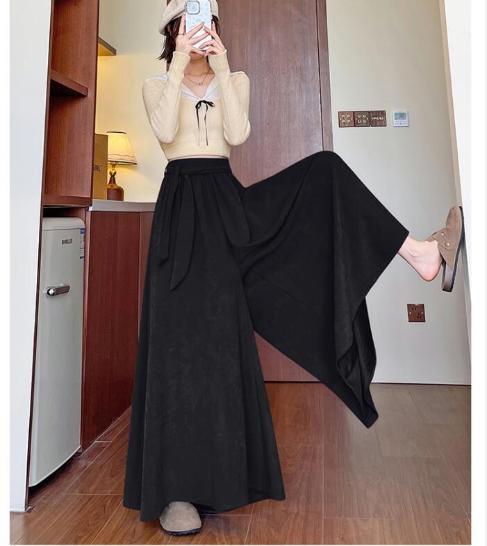 スカーチョ ワイドパンツ レディース 3色 S-3L ハイウエスト ウエストゴム フレア 大人カジュアル 25LT231