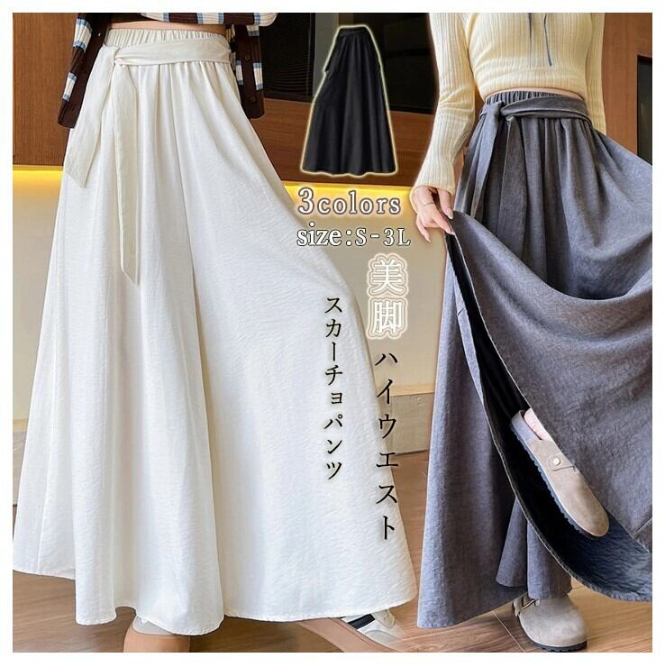 ■商品:スカーチョ ワイドパンツ レディース 3色 S-3L ハイウエスト ウエストゴム フレア 大人カジュアル 韓国 ファッション コーデ おすすめ カジュアル きれいめ 大きいサイズ 人気 ゆったり 20代 30代 40代 50代
