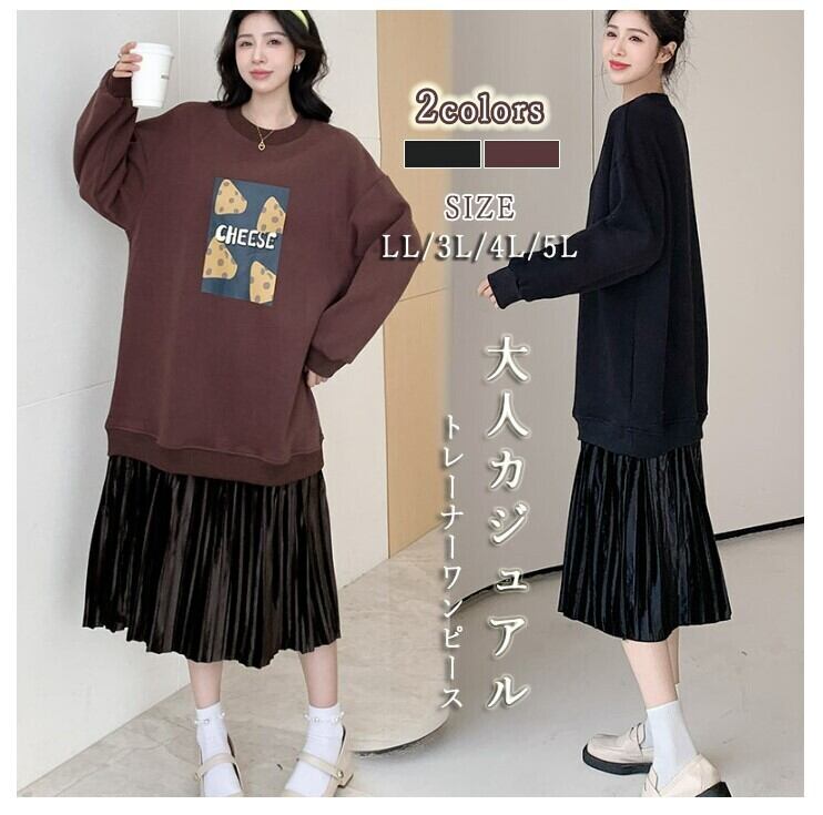 ■商品:スウェット トレーナー ロング丈 レディース 2色 LL-5L ワンピース 裏起毛 大人カジュアル 韓国 ファッション コーデ おすすめ カジュアル きれいめ 大きいサイズ 人気 ゆったり 20代 30代 40代 50代