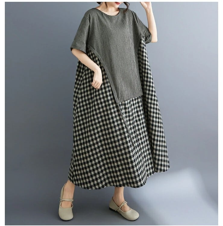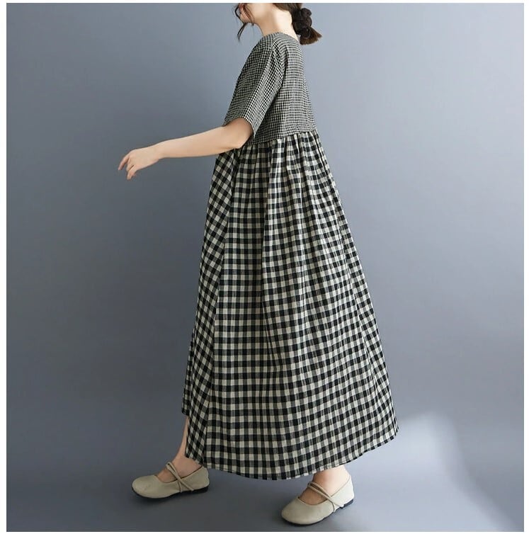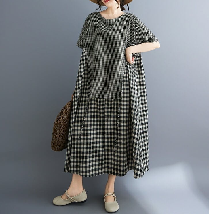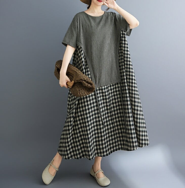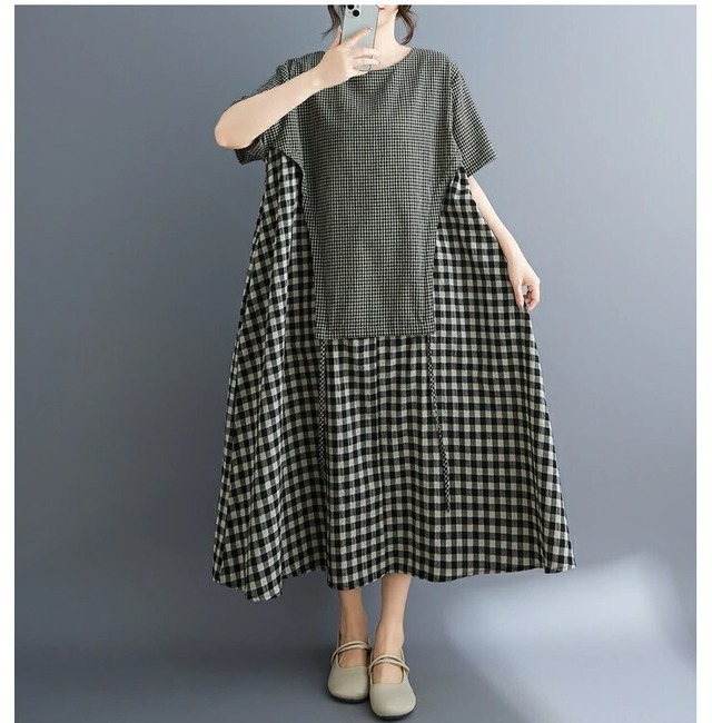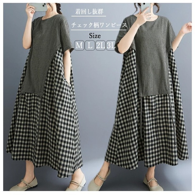 ■商品:ワンピース 半袖 ギンガムチェック レディース M-3L Aライン ロングワンピース 大人 夏 カジュアル 韓国 ファッション コーデ おすすめ カジュアル きれいめ 大きいサイズ 人気 ゆったり 20代 30代 40代 50代