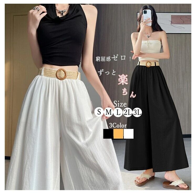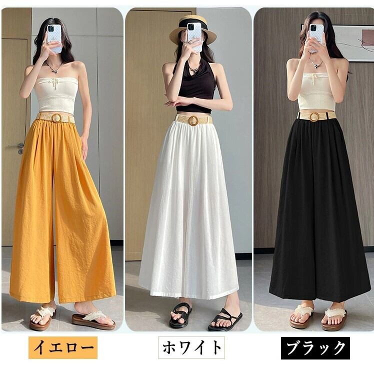 ■商品:ワイドパンツ スカーチョ レディース 3色 S-3L 無地 ウエストゴム 綿麻 大人 ゆったり 韓国 ファッション コーデ おすすめ カジュアル きれいめ 大きいサイズ 人気 ゆったり 20代 30代 40代 50代