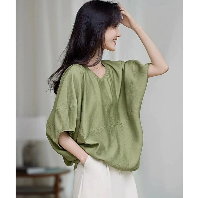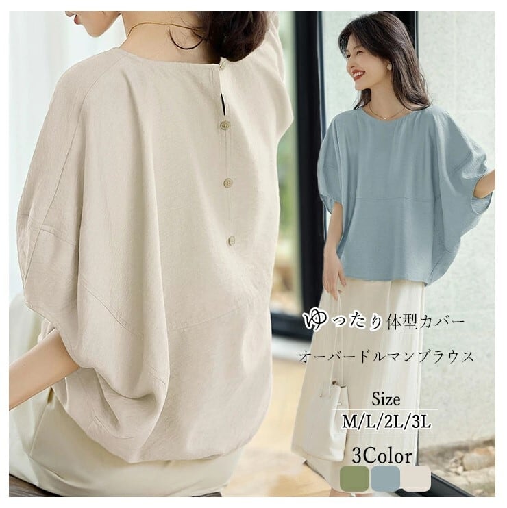 ■商品:ブラウス ドルマンブラウス レディース 3色 M-3L 五分袖 大人 ゆったり 上品 きれいめ 韓国 ファッション コーデ おすすめ カジュアル きれいめ 大きいサイズ 人気 ゆったり 20代 30代 40代 50代