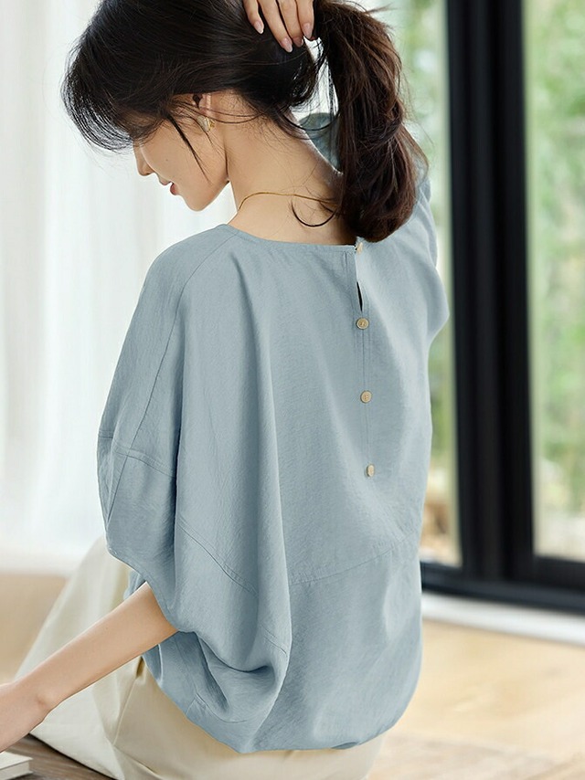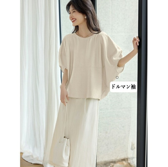 ブラウス ドルマンブラウス レディース 3色 M-3L 五分袖 大人 ゆったり 上品 きれいめ 25LT247
