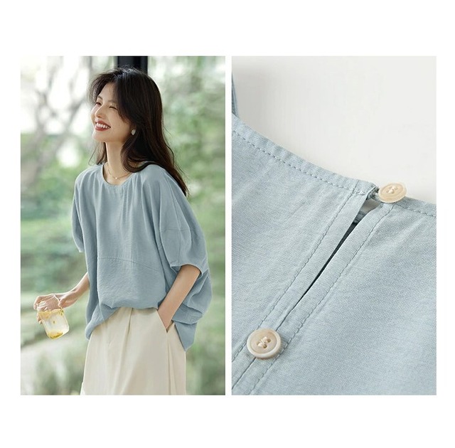 ★特徴:このドルマンブラウスは、大人の女性にぴったりな上品なスタイルを提供します。五分袖のデザインが優雅さを引き立て、ゆったりとしたシルエットが快適な着心地を実現しました。カジュアルなシーンからお出かけまで幅広く活躍し、コーディネートを格上げする一着です。3色の豊富なカラーバリエーションとMから3Lまでのサイズ展開があり、自分に合ったスタイルを見つけることができます。