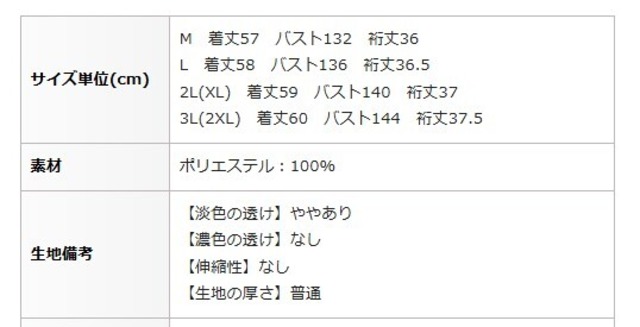 2L(XL) 着丈59 バスト140 裄丈37