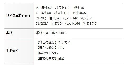 3L(2XL) 着丈60 バスト144 裄丈37.5