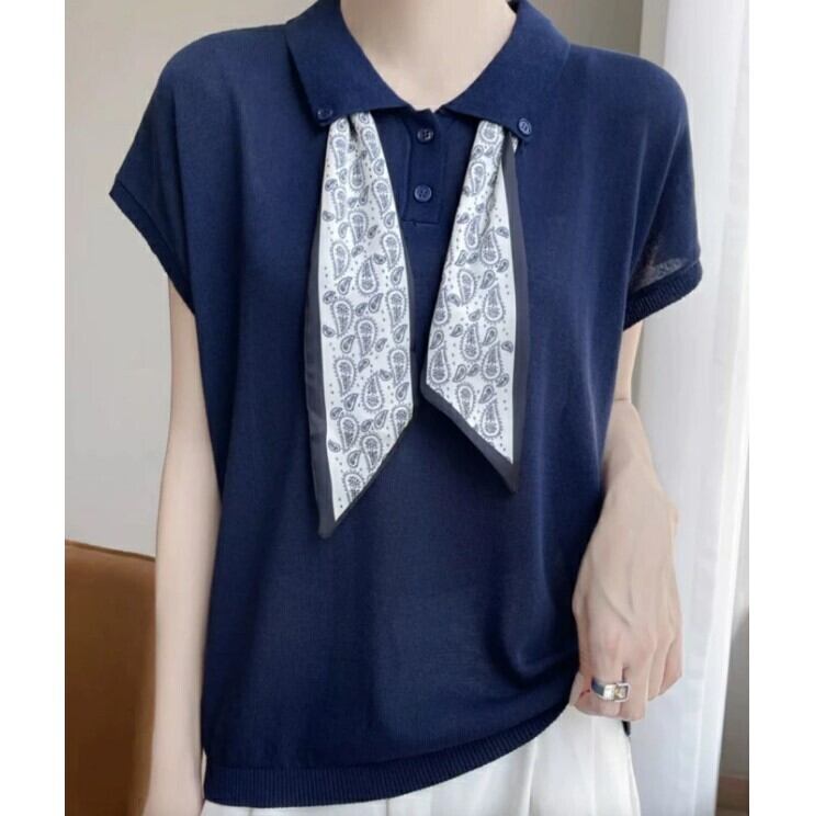 サマーニット 半袖 フレンチスリーブ レディース 4色 フリーサイズ ボウタイ ニットソー きれいめ 春夏 25LT250