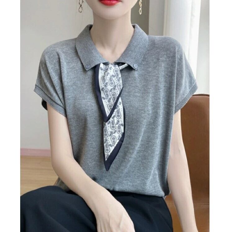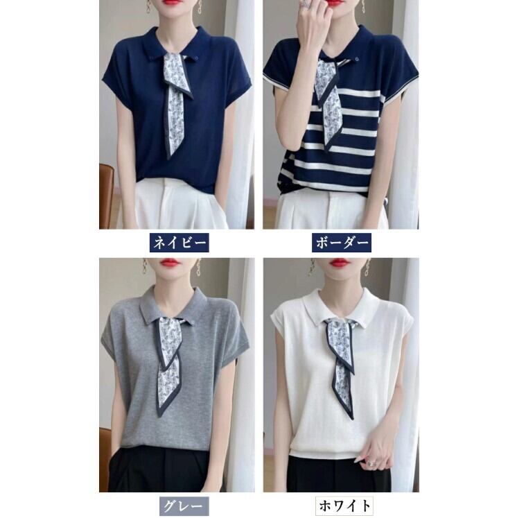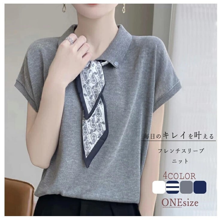 ■商品:サマーニット 半袖 フレンチスリーブ レディース 4色 フリーサイズ ボウタイ ニットソー きれいめ 春夏 韓国 ファッション コーデ おすすめ カジュアル きれいめ 大きいサイズ 人気 ゆったり 20代 30代 40代 50代