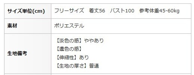 ★サイズ:フリーサイズ 着丈56 バスト100 参考体重45-60kg
