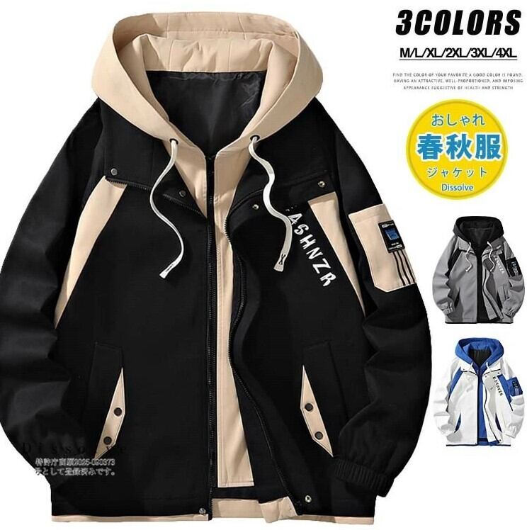 ■商品:ジャンパー マウンテンパーカー メンズ 3色 M-4XL 薄手 ジャケット ライトアウター 春秋 韓国 ファッション コーデ おすすめ カジュアル きれいめ 大きいサイズ 人気 ゆったり 20代 30代 40代 50代