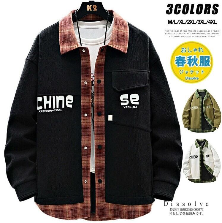 ■商品:シャツジャケット 薄手 メンズ 3色 M-4XL ライトアウター 重ね着風 長袖 カジュアル 春秋 韓国 ファッション コーデ おすすめ カジュアル きれいめ 大きいサイズ 人気 ゆったり 20代 30代 40代 50代