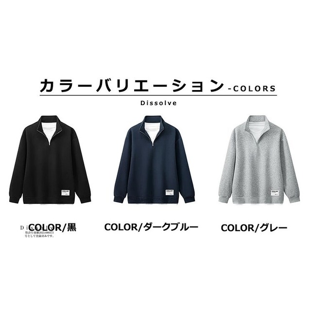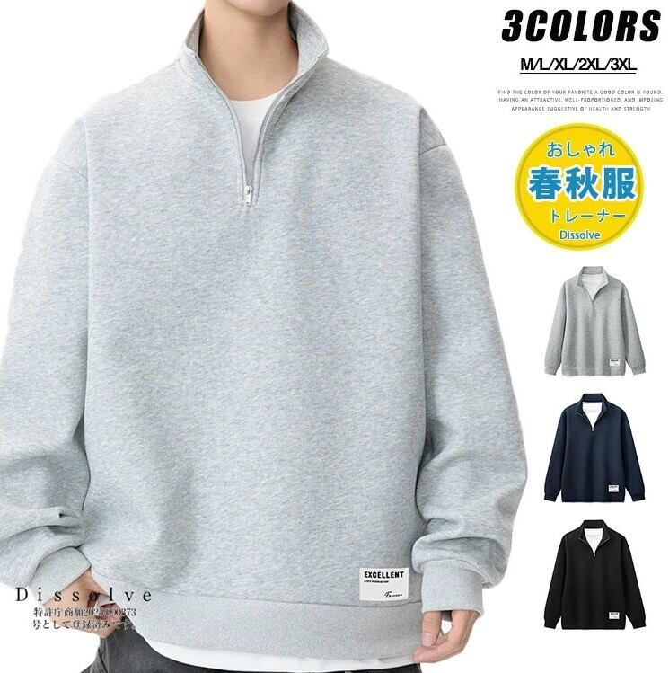 ■商品:トレーナー ハーフジップ メンズ 3色 M-3XL プルオーバー スウェット カジュアル 春秋 韓国 ファッション コーデ おすすめ カジュアル きれいめ 大きいサイズ 人気 ゆったり 20代 30代 40代 50代