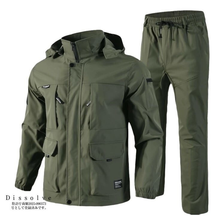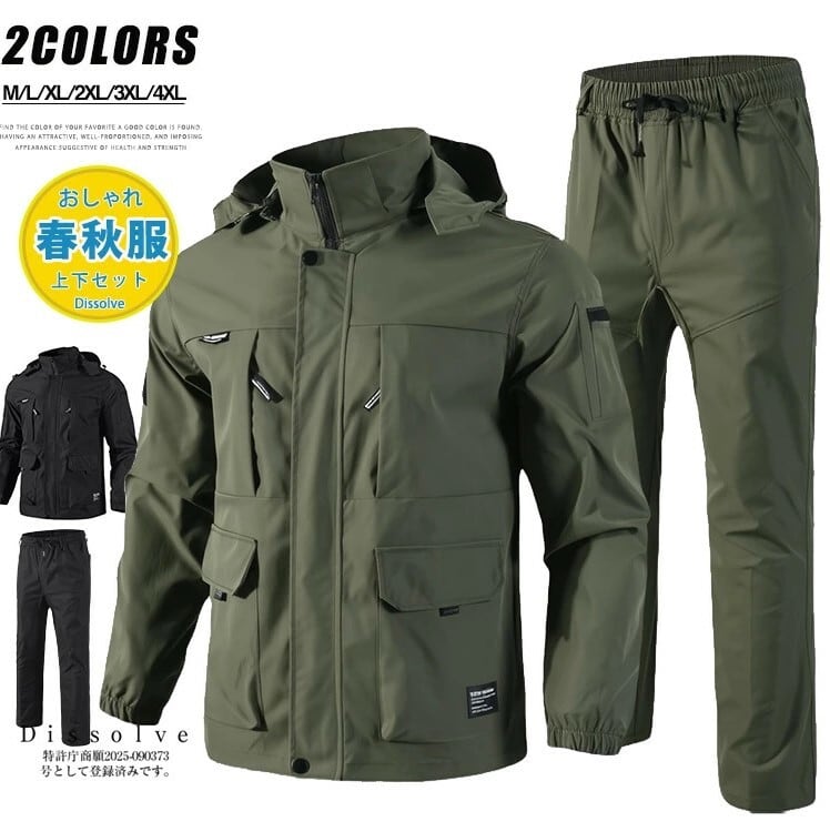 セットアップ マウンテンパーカー メンズ 2色 M-4XL 長袖 フード付き アウトドア 薄手 登山 釣り 25LT273
