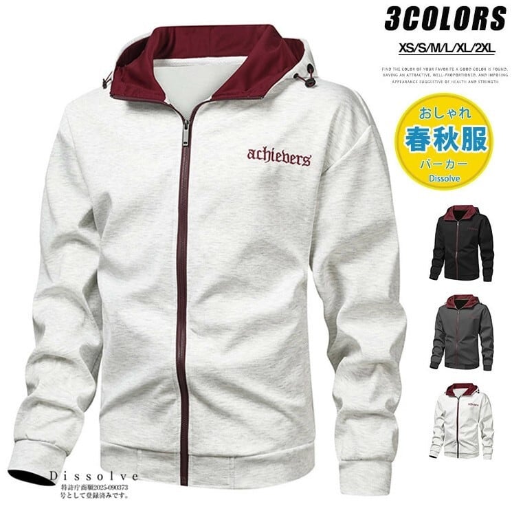 ■商品:パーカー ジップアップ メンズ 3色 XS-2XL 長袖 フード付き ジップパーカー カジュアル 韓国 ファッション コーデ おすすめ カジュアル きれいめ 大きいサイズ 人気 ゆったり 20代 30代 40代 50代