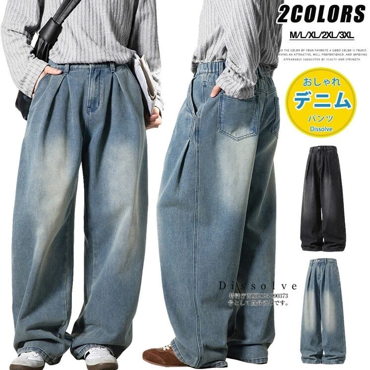 ■商品:デニムパンツ ワイドパンツ バレルパンツ メンズ 2色 M-3XL ゆったり カジュアル 韓国 ファッション コーデ おすすめ カジュアル きれいめ 大きいサイズ 人気 ゆったり 20代 30代 40代 50代