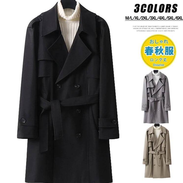 ■商品:トレンチコート ダブルコート メンズ 3色 M-6XL 紳士服 ビジネス きれいめ 春秋 アウター フォーマル 韓国 ファッション コーデ おすすめ カジュアル きれいめ 大きいサイズ 人気 ゆったり 20代 30代 40代 50代