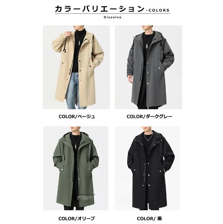 ■商品:ロングコート フード付き メンズ 4色 M-3XL 薄手 ライトアウター カジュアル アウトドア 韓国 ファッション コーデ おすすめ カジュアル きれいめ 大きいサイズ 人気 ゆったり 20代 30代 40代 50代