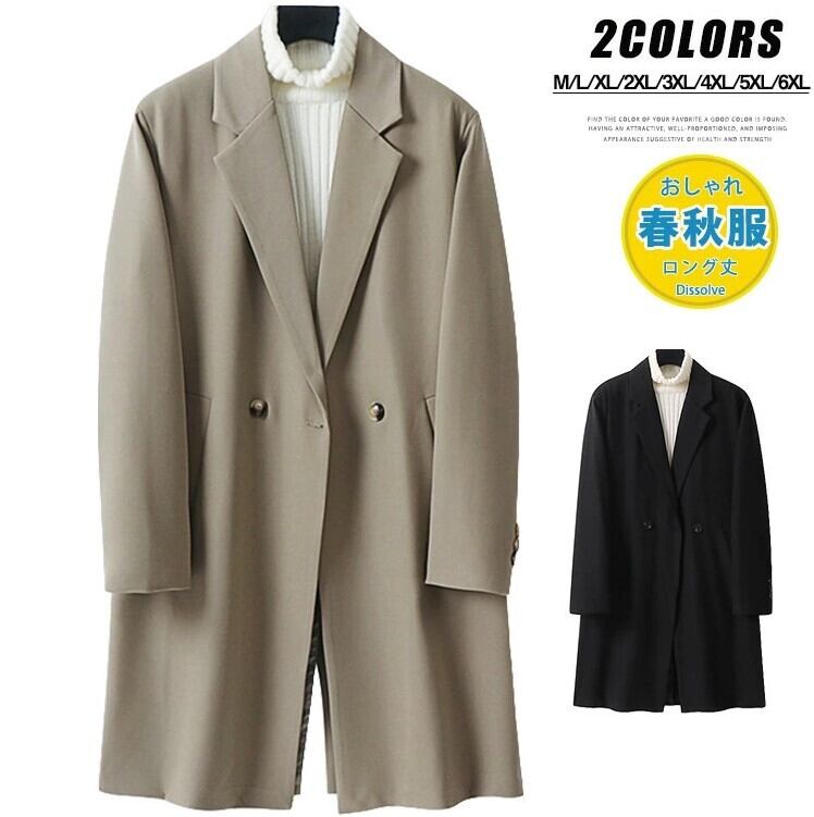 ■商品:チェスターコート ロングコート メンズ 2色 M-6XL 無地 春秋 ロング丈 紳士 フォーマル 韓国 ファッション コーデ おすすめ カジュアル きれいめ 大きいサイズ 人気 ゆったり 20代 30代 40代 50代