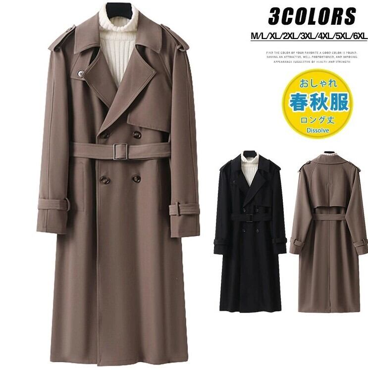 ■商品:トレンチコート ロングコート メンズ 2色 M-6XL 無地 春秋 ロング丈 紳士 フォーマル 韓国 ファッション コーデ おすすめ カジュアル きれいめ 大きいサイズ 人気 ゆったり 20代 30代 40代 50代