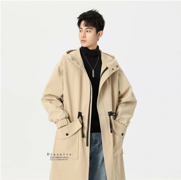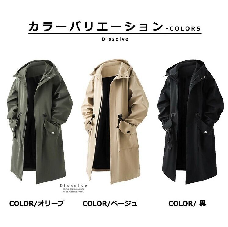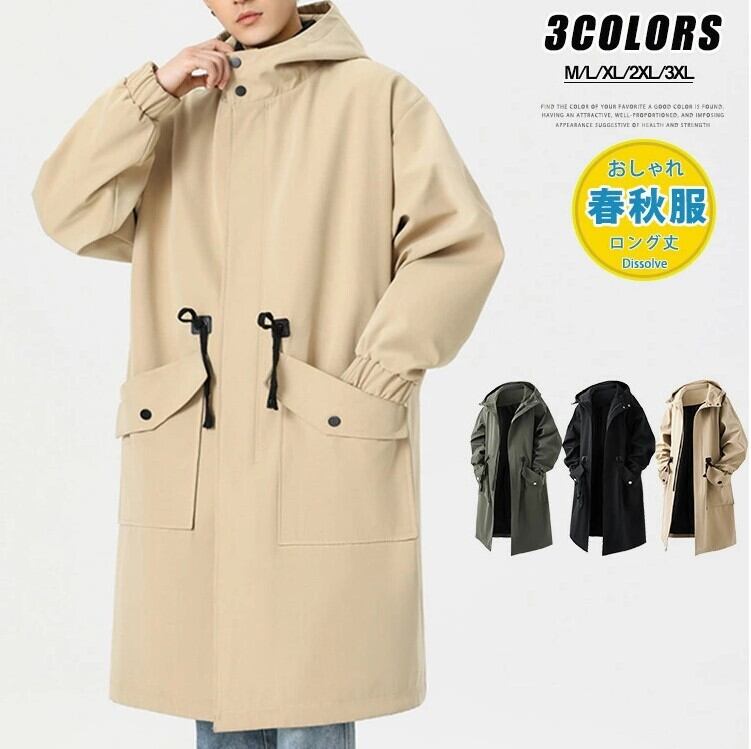 ■商品:カジュアルコート ロングコート メンズ 3色 M-3XL 無地 薄手 春秋 マウンテンパーカー アウトドア 韓国 ファッション コーデ おすすめ カジュアル きれいめ 大きいサイズ 人気 ゆったり 20代 30代 40代 50代