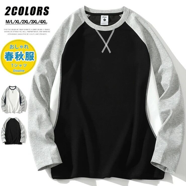 ■商品:tシャツ 長袖 長袖tシャツ メンズ 2色 M-4XL ラグランtシャツ カジュアル 春秋 韓国 ファッション コーデ おすすめ カジュアル きれいめ 大きいサイズ 人気 ゆったり 20代 30代 40代 50代