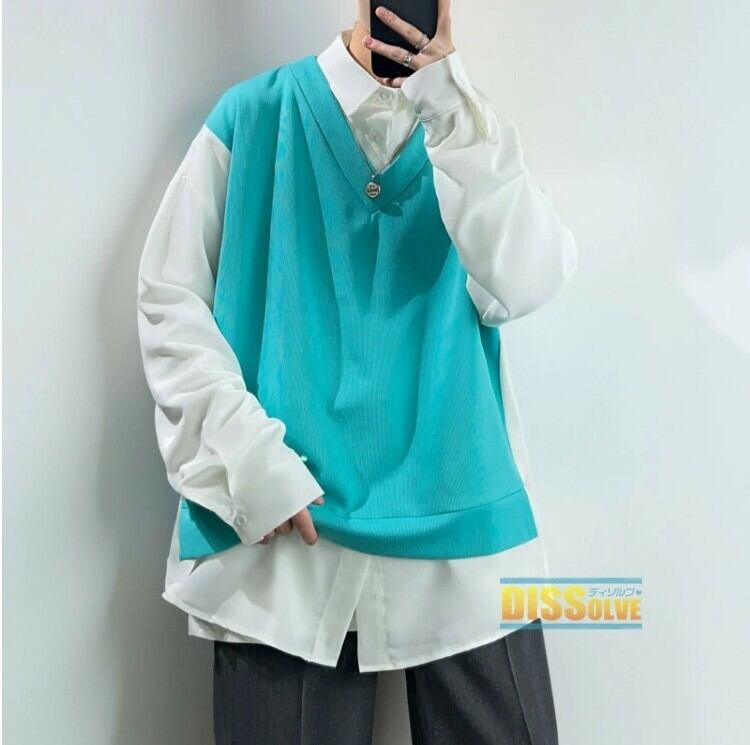 ■商品:シャツ 長袖 長袖シャツ 重ね着風 メンズ 5色 S-3XL 無地 切り替え ゆったり 春秋 カジュアル 韓国 ファッション コーデ おすすめ カジュアル きれいめ 大きいサイズ 人気 ゆったり 20代 30代 40代 50代