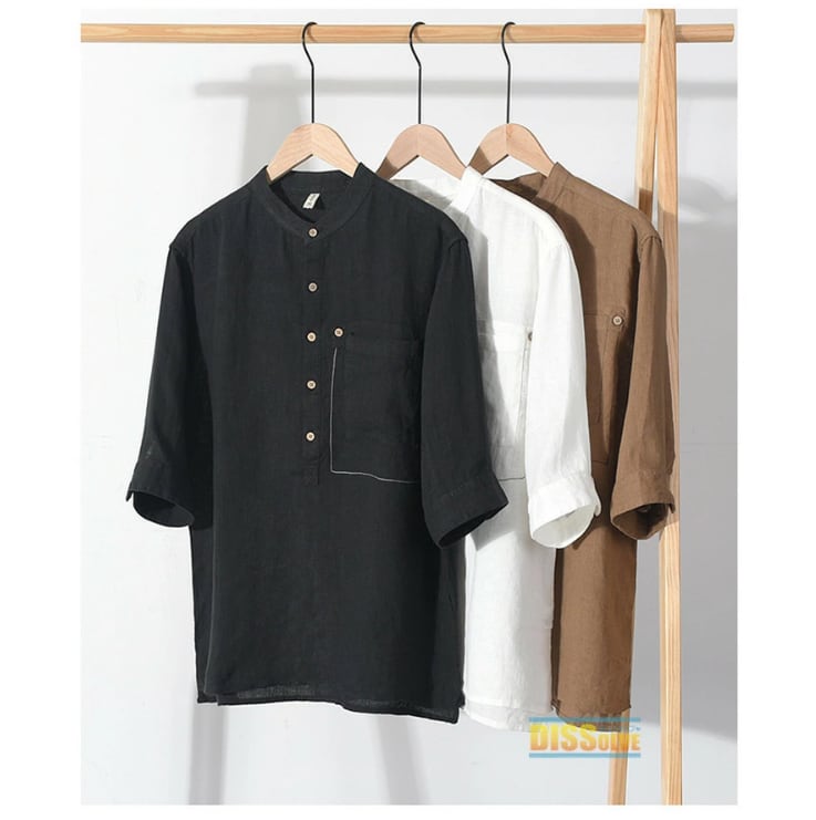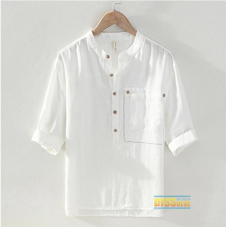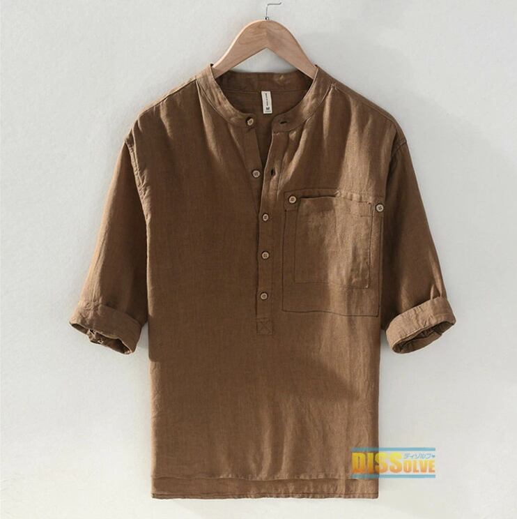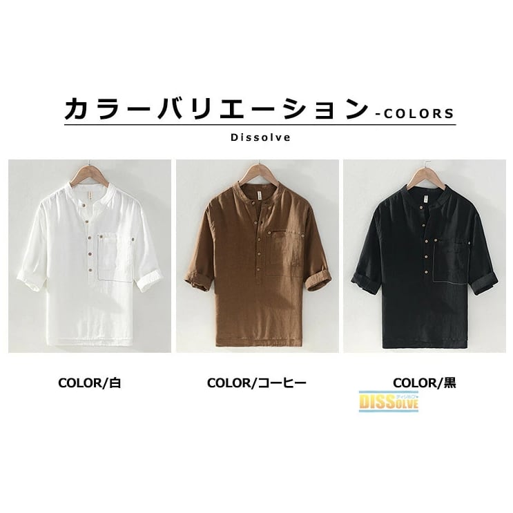 ■商品:シャツ リネンシャツ 五分袖 麻 メンズ 3色 M-3XL 麻100% 薄手 涼しい スタンドカラー カジュアル 韓国 ファッション コーデ おすすめ カジュアル きれいめ 大きいサイズ 人気 ゆったり 20代 30代 40代 50代