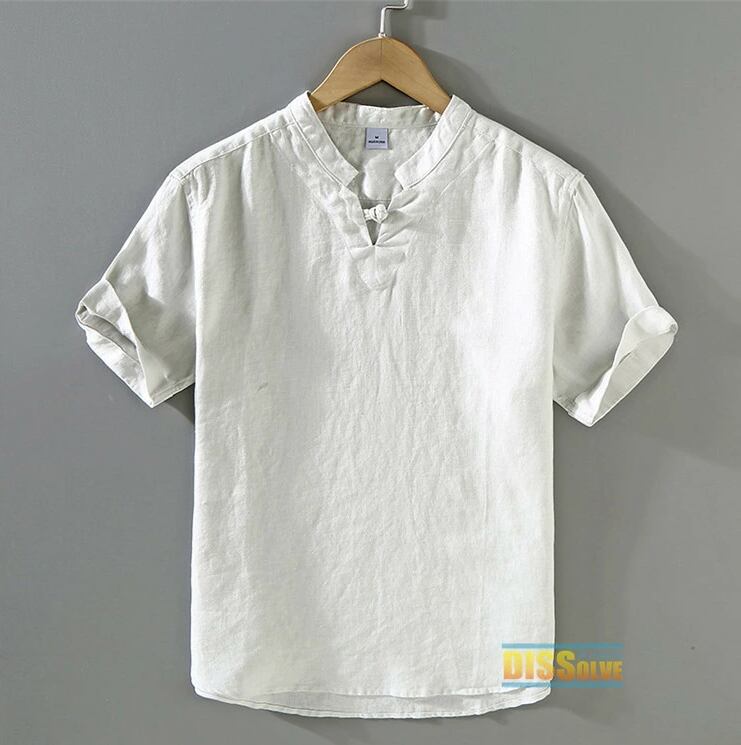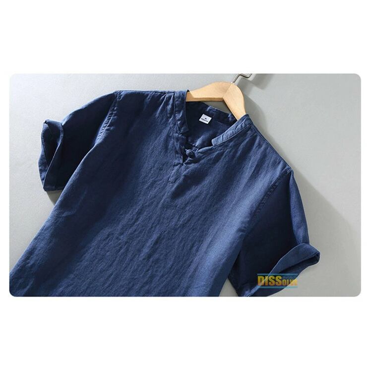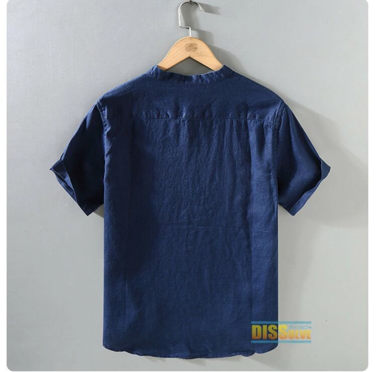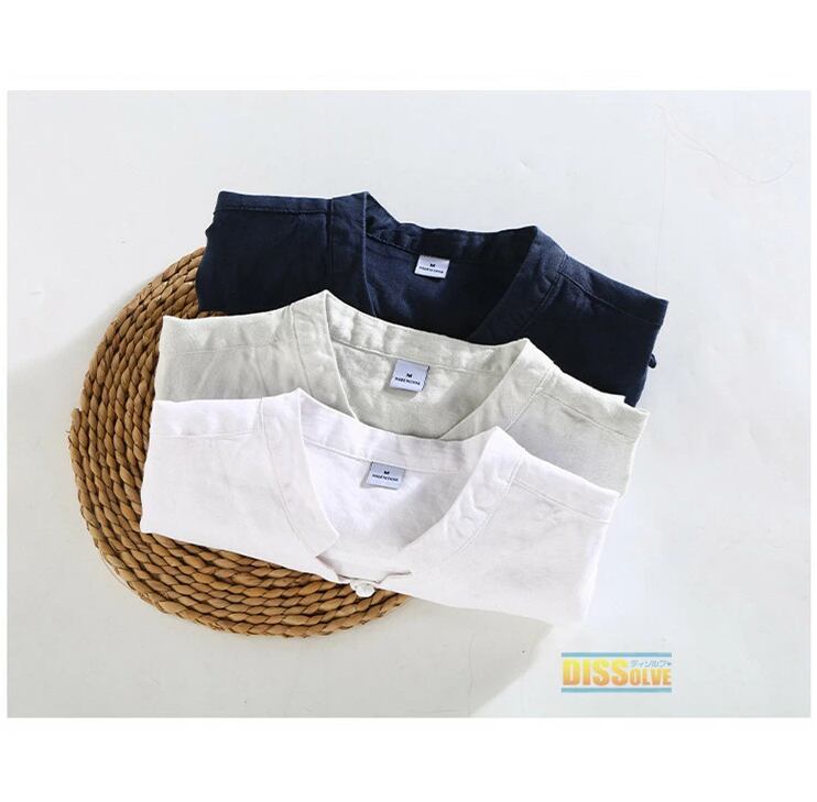シャツ リネンシャツ 半袖 麻 メンズ 3色 M-3XL 麻100% Vネック 薄手 涼しい カジュアル 夏 25LT339