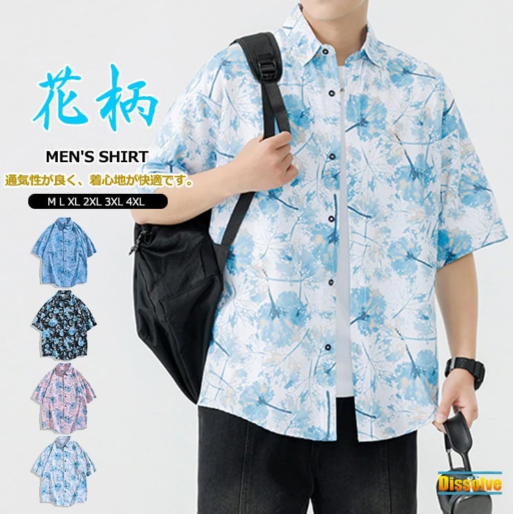 ■商品:シャツ 半袖 半袖シャツ アロハシャツ メンズ 4色 M-4XL 花柄 薄手 花柄シャツ カジュアル リゾート 夏 韓国 ファッション コーデ おすすめ カジュアル きれいめ 大きいサイズ 人気 ゆったり 20代 30代 40代 50代