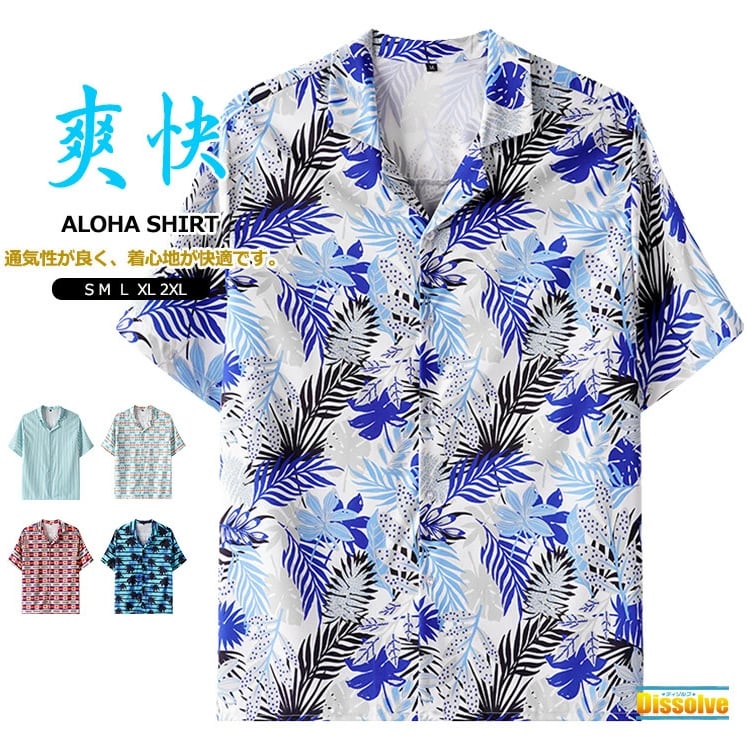 アロハシャツ 半袖 半袖シャツ 花柄 メンズ 5色 S-3XL 綿100% 柄シャツ カジュアル 夏 25LT375