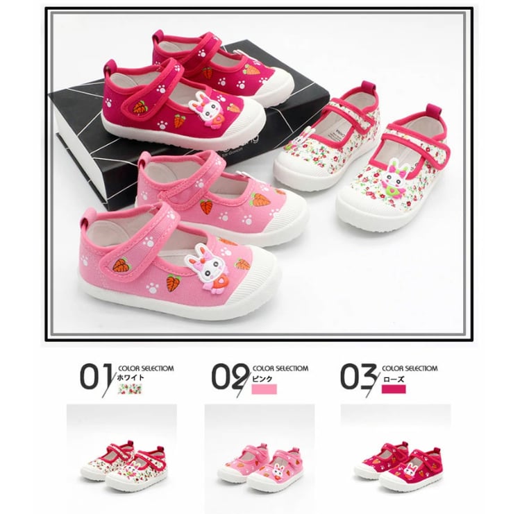 キッズシューズ 室内履き 女の子 ベビー 子供用 3色 12.5-18.5㎝ 上履き スクールシューズ 上靴 洗える かわいい 26LT515