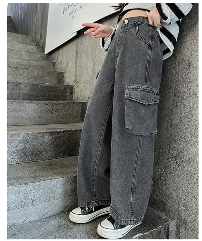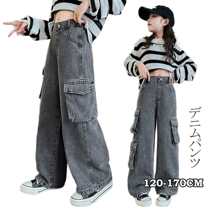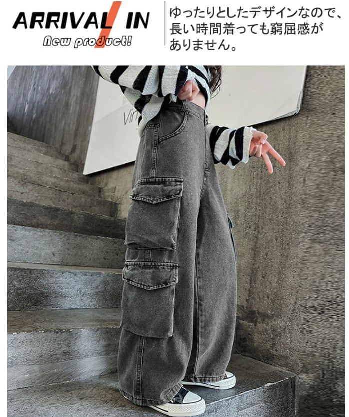 ■商品:カーゴパンツ デニムパンツ 女の子 子供服 120-170㎝ ワイドデニム デニムカーゴパンツ ゆったり ウエストゴム 韓国 ファッション コーデ おすすめ カジュアル きれいめ 大きいサイズ 人気 ゆったり 20代 30代 40代 50代