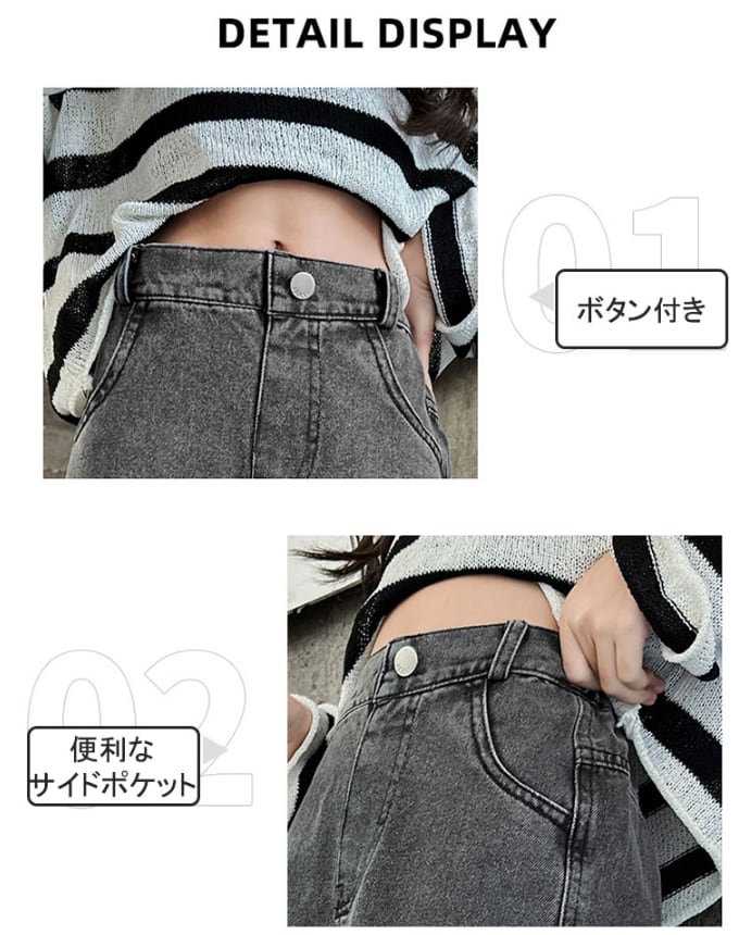 120cmから170cmまでのサイズ展開で、お子様の成長に合わせて選べます。ファッション性と機能性を兼ね備えたこのデニムパンツで、毎日のコーディネートを楽しんでください。
